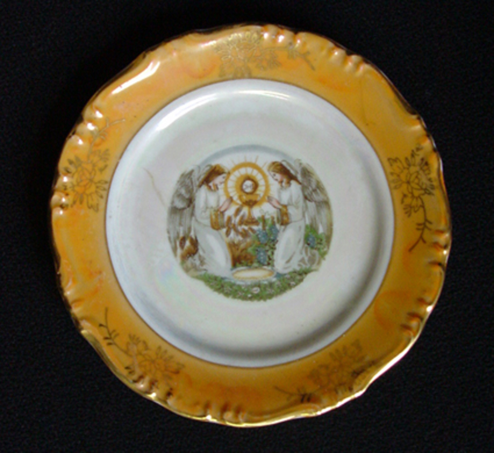 Gedenkbord van porselein beschilderd circa 1930-1965