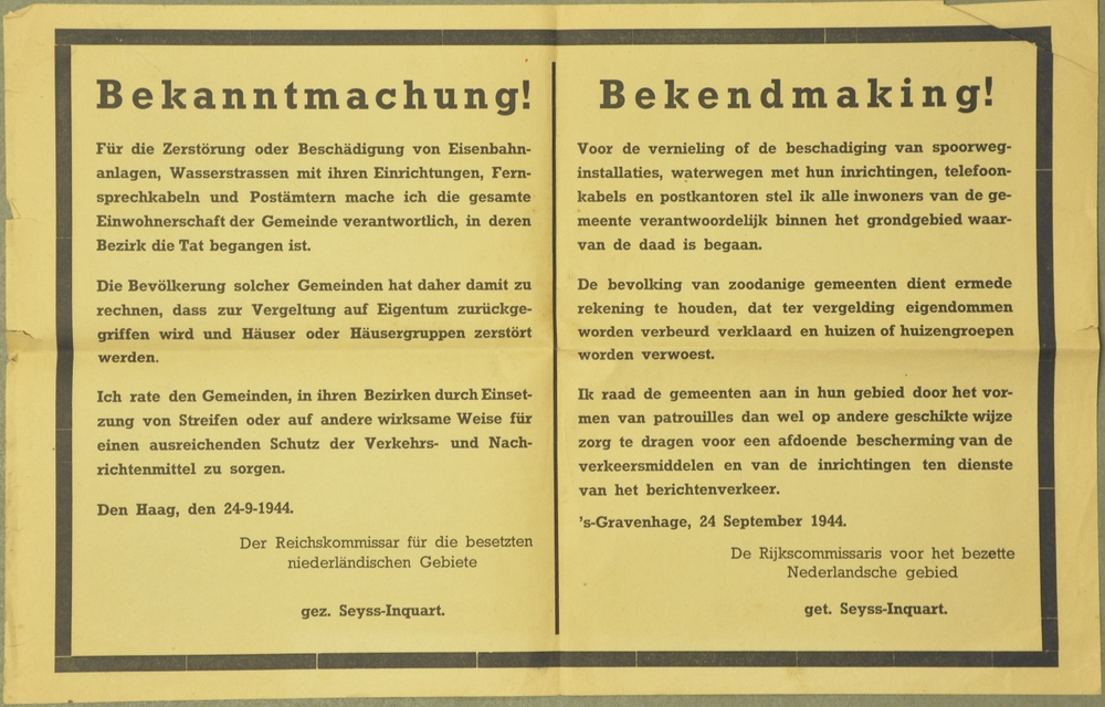 Bekendmaking op papier door Seyss-Inquart, 's-Graven...