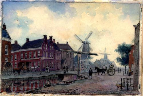 Aquarel van de Hoofdbrug te Drachten rond 1870