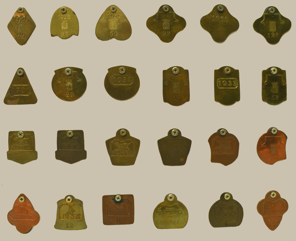 24 hondenpenningen van de gemeente Nijkerk, 1926-1941