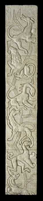 Gipsen ontwerp voor een verticaal reliëf aan de toen...