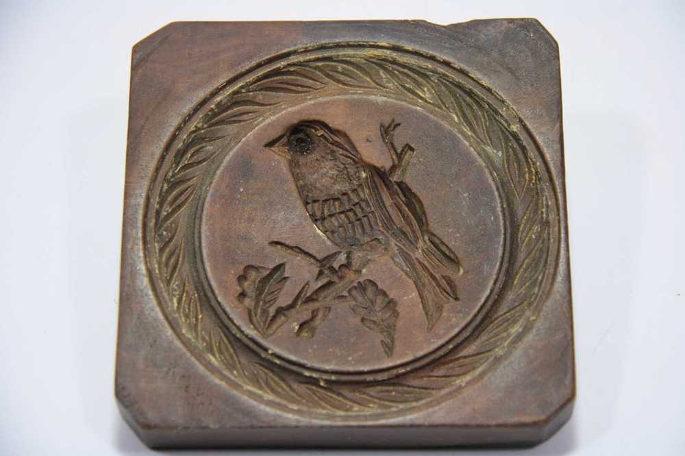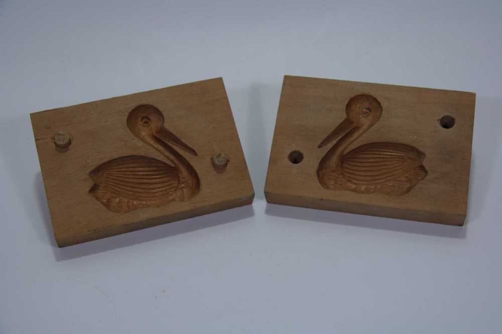 Marsepeinvorm van hout met afbeelding van vogels op ...