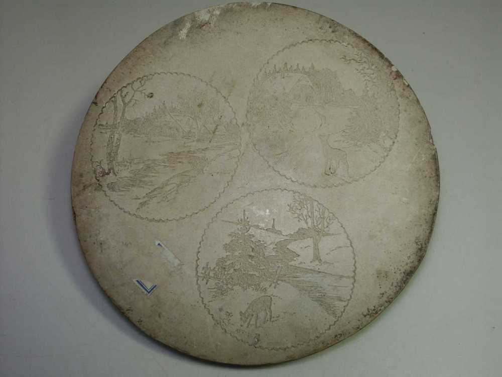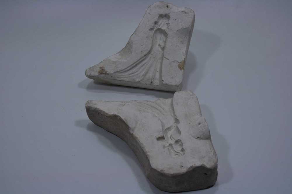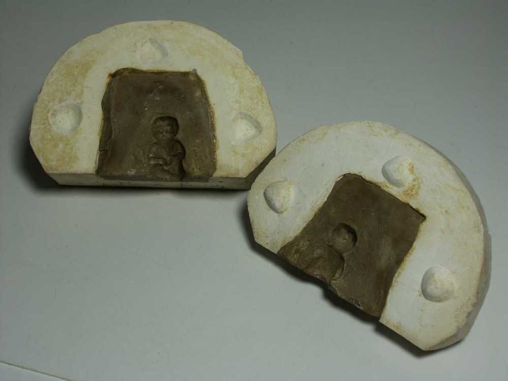 Stuifvorm van gips met 3 figuren: boerderij met beek...