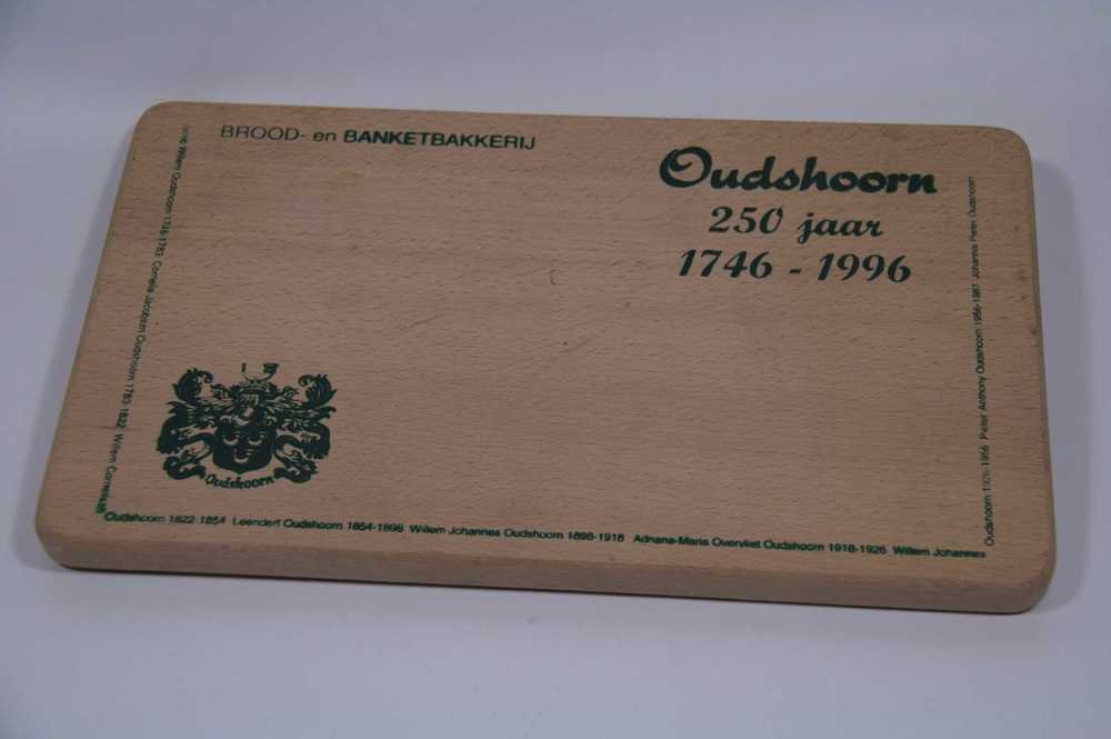 Broodplank van hout t.g.v. 250 jaar bakkerij Oudshoo...