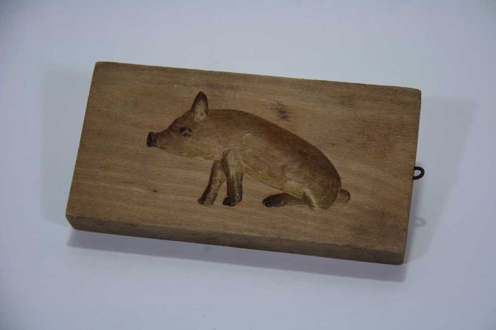 Suikerwerkplank van hout met 5 figuren: een vogel, b...
