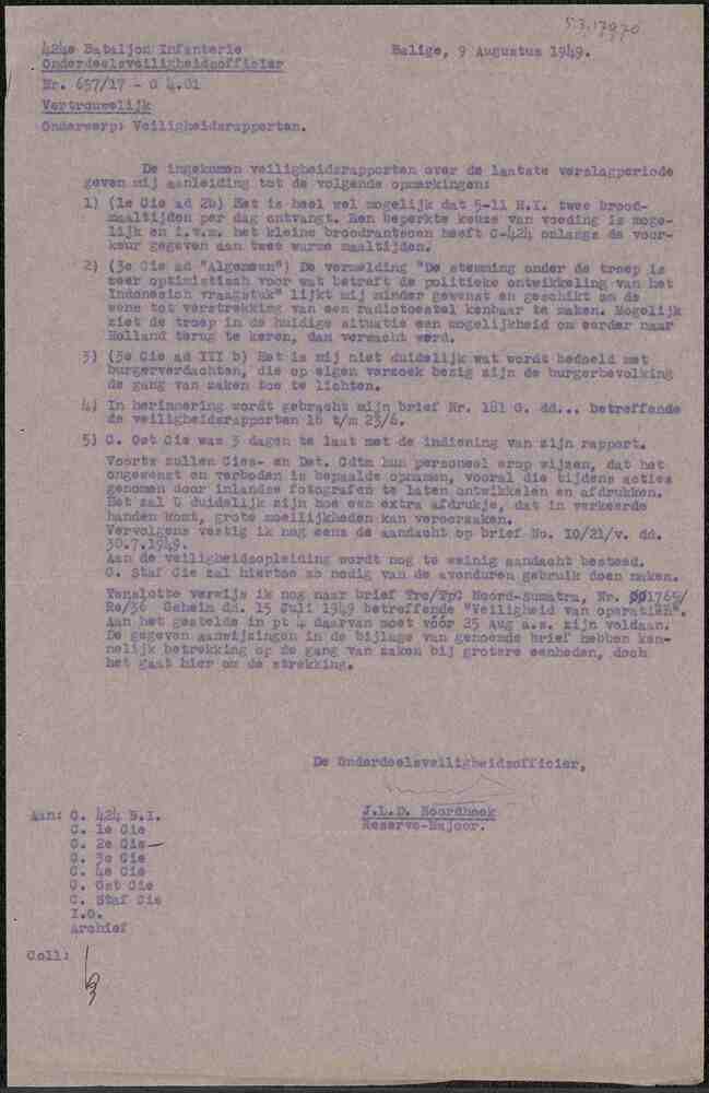 Brief van Onderdeelsveiligheidsofficier 424e Bat. In...