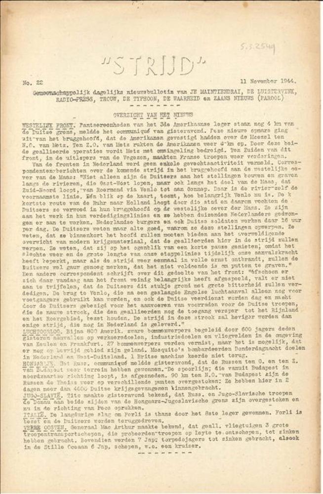 Dagelijksche nieuwsuitgave "Trouw" 4 mei 1945