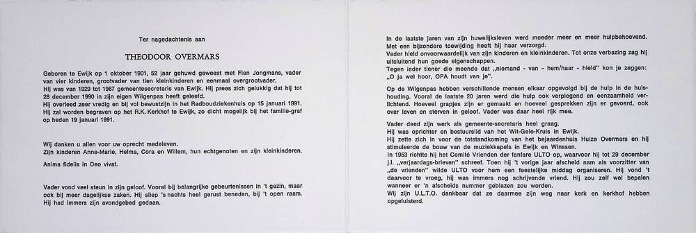Overlijdensbericht van Theodoor Overmars