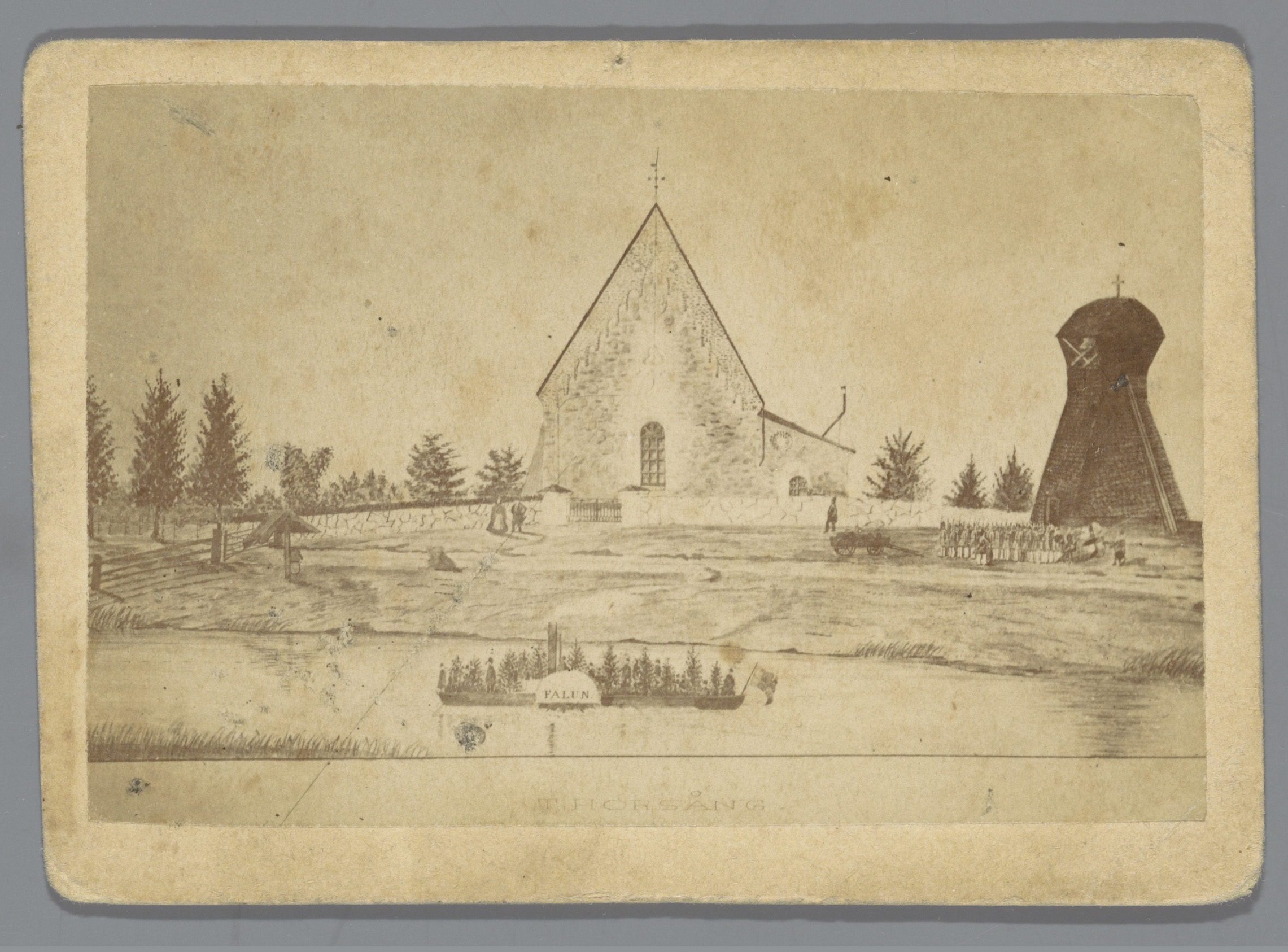 Fotoreproductie van een tekening van Torsangs Kyrka