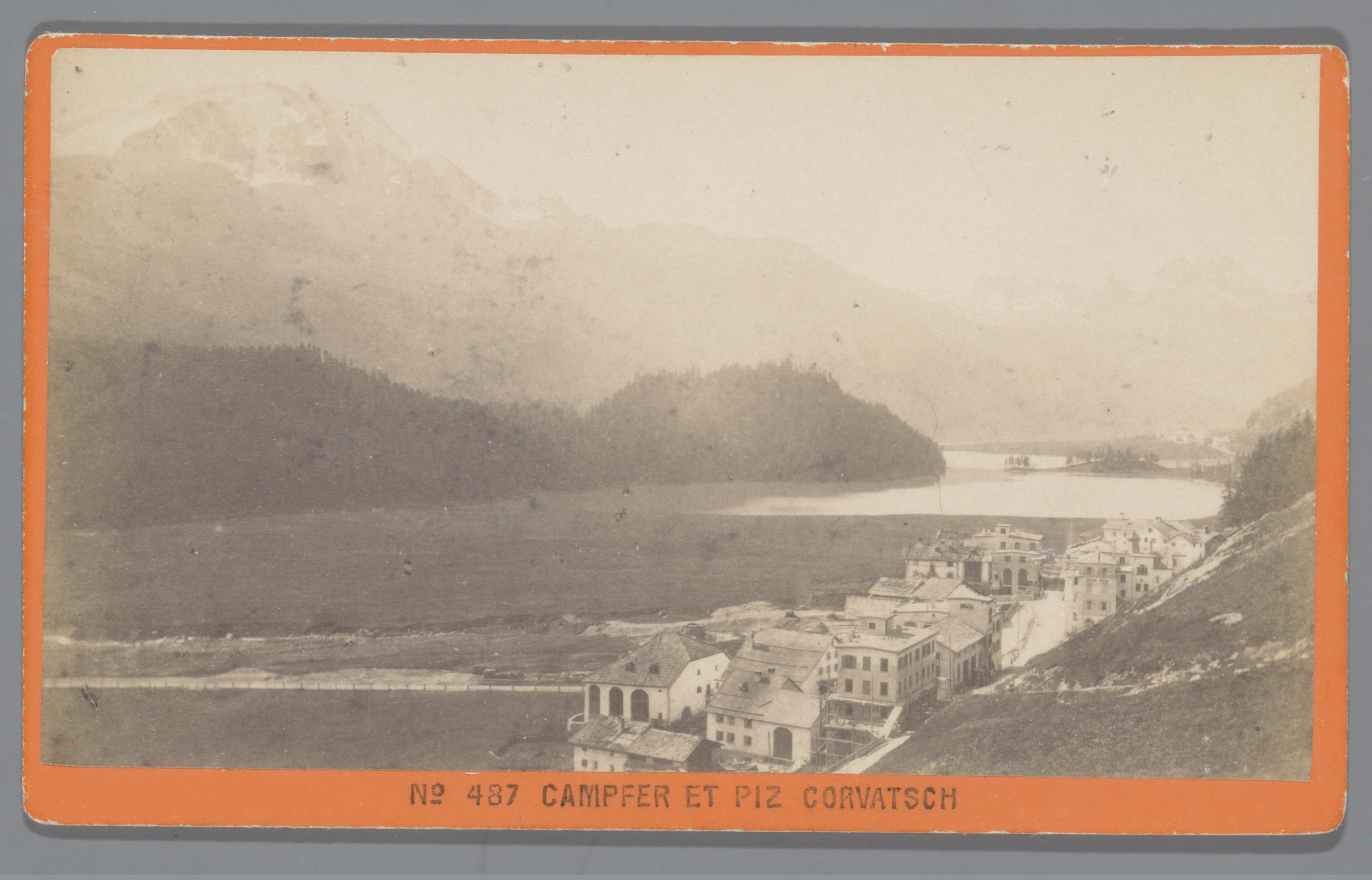 Gezicht op Campfer, de Silvaplanersee en de Piz Corv...