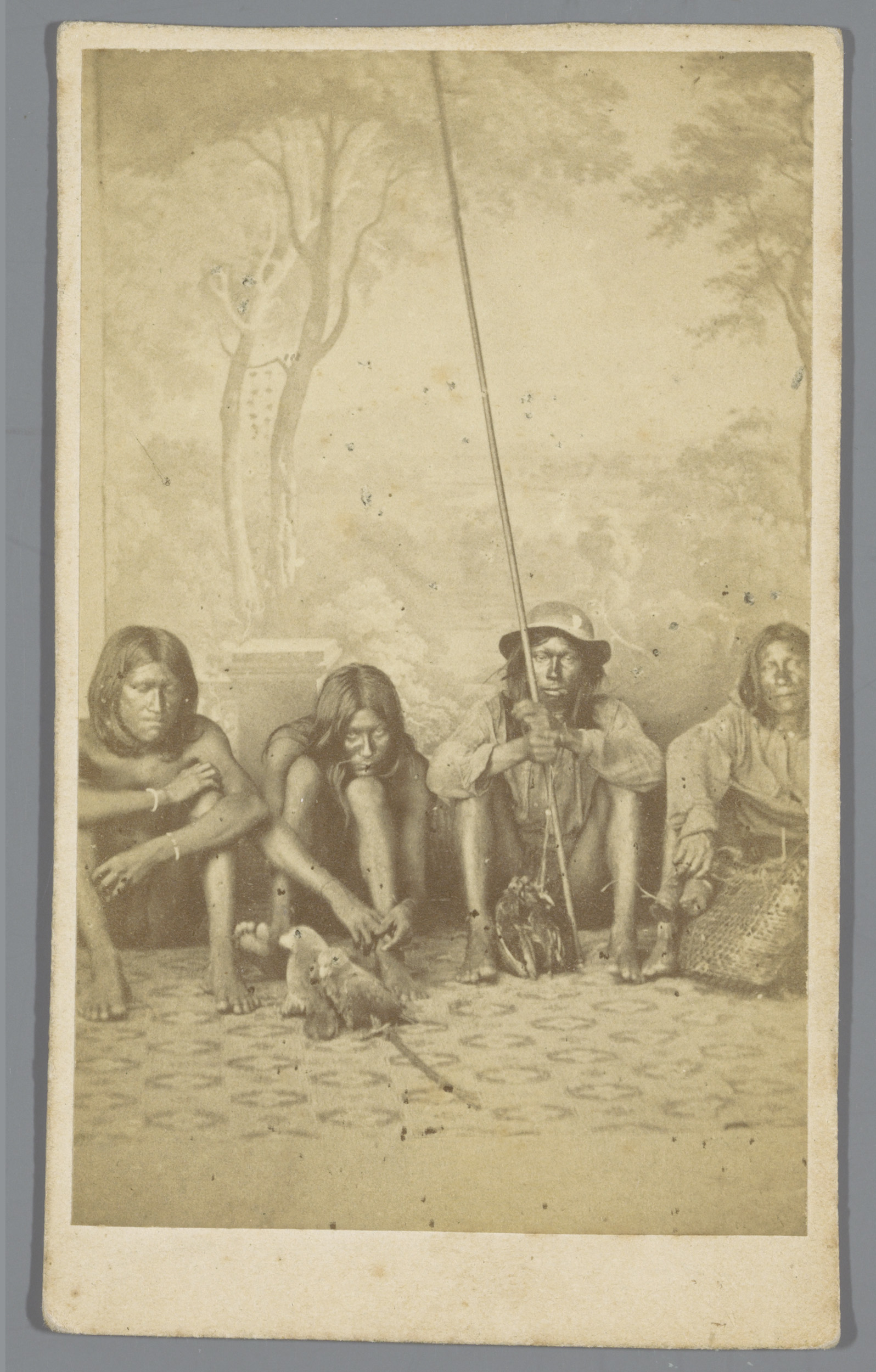 Portret van vier onbekende Surinaamse Arowakken tege...