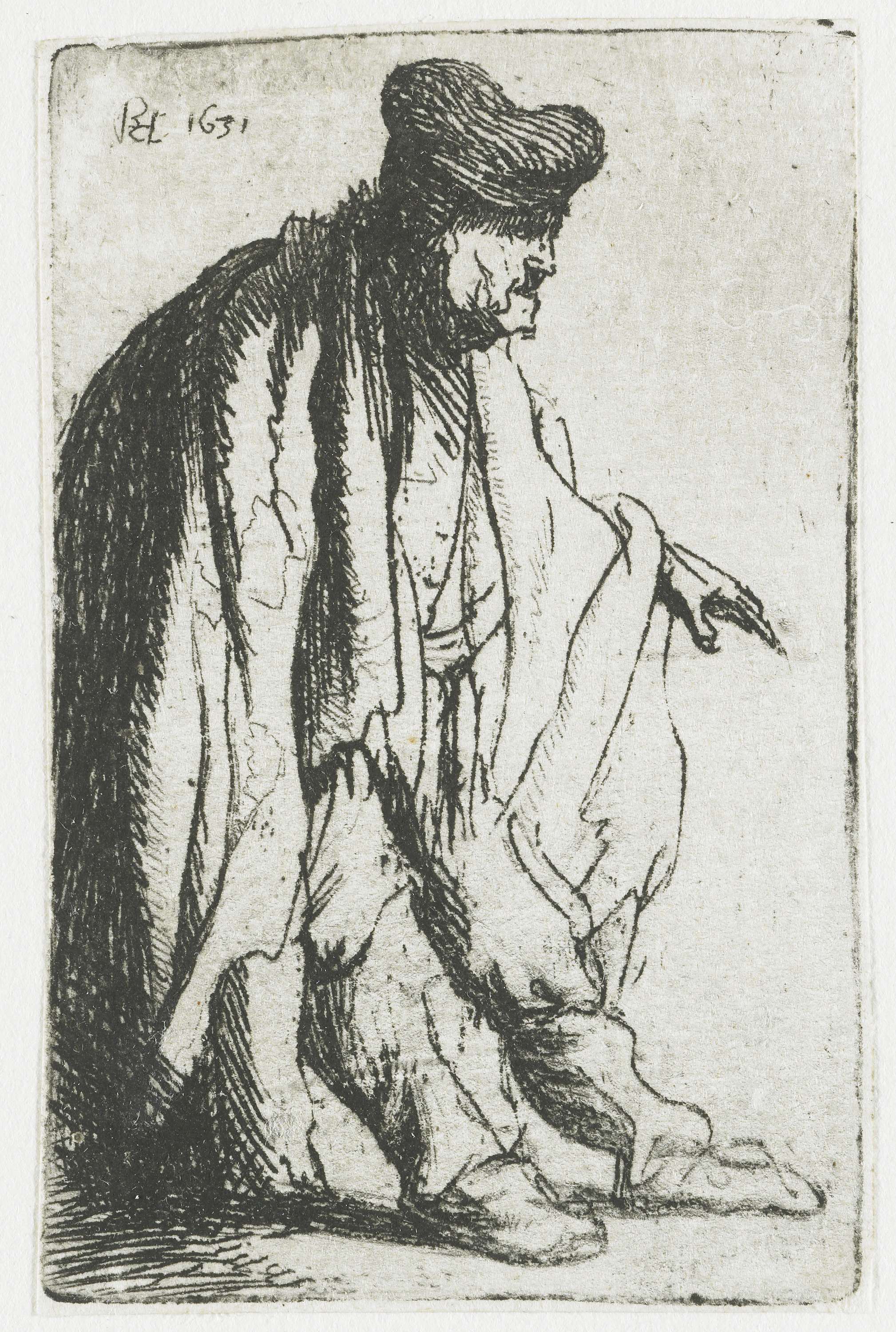 Bedelaar met uitgestrekte linkerhand