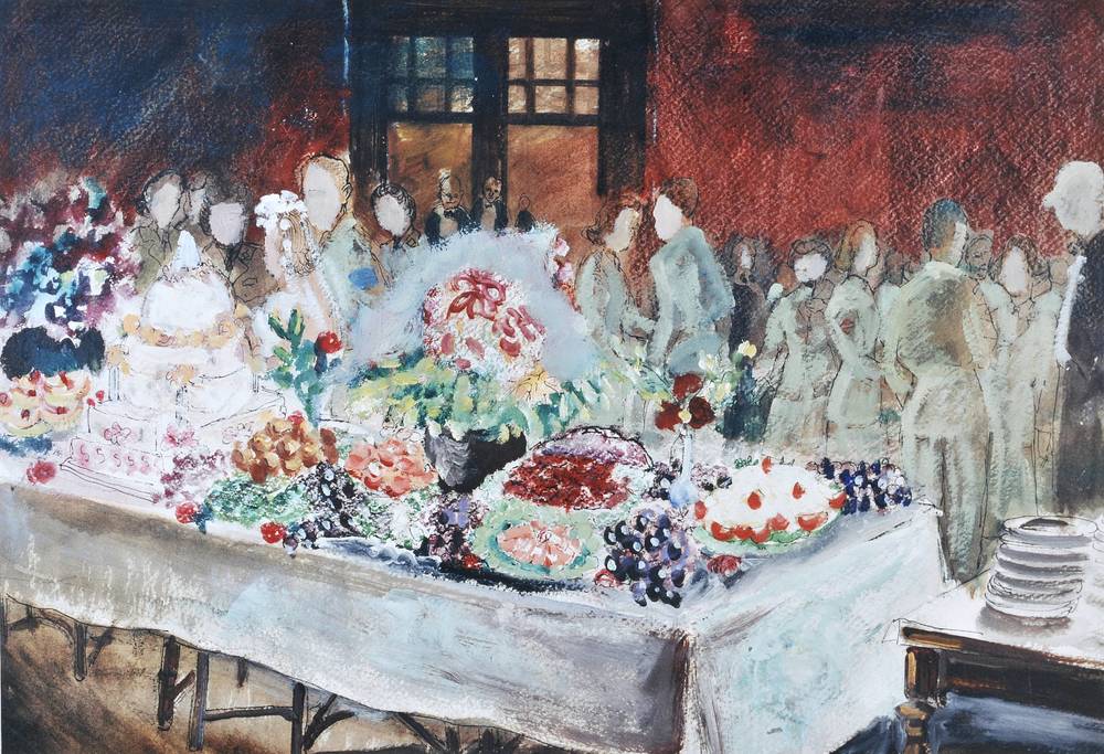 Kunstwerk. 'Huwelijksreceptie in de Kit Kat Club'. 1...
