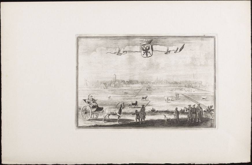Koperplaat met gezicht op Franeker, over weilanden m...