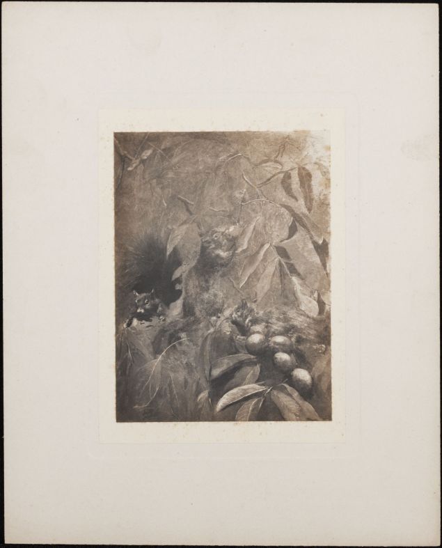 Drie eekhoorns in een boom, naar schilderij van Chri...