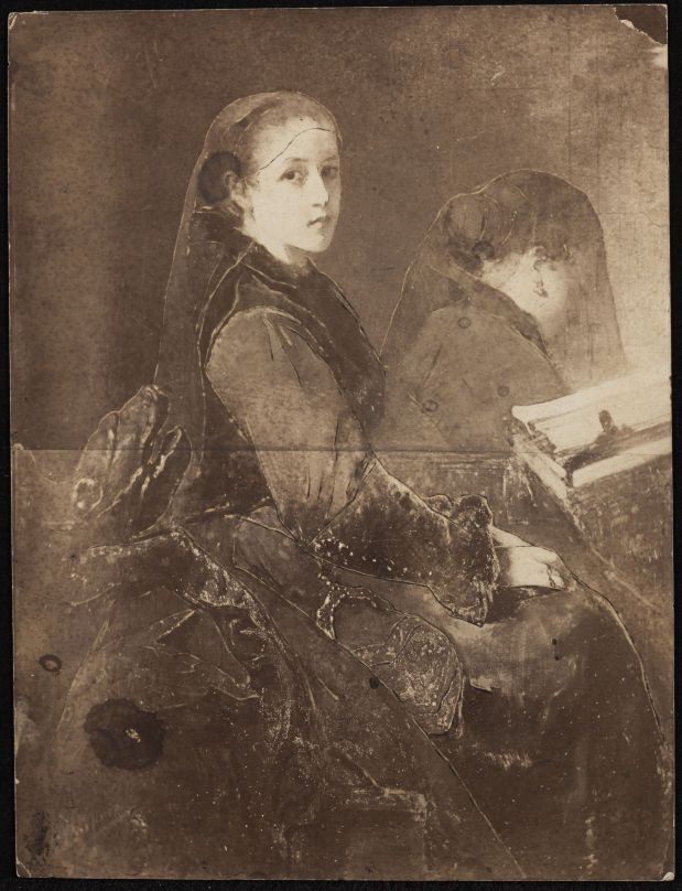 Twee jonge gesluierde vrouwen, naar een schilderij v...