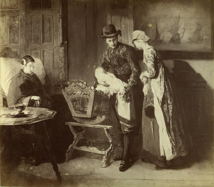 Kraamvisite, naar een schilderij van Christoffel Bis...