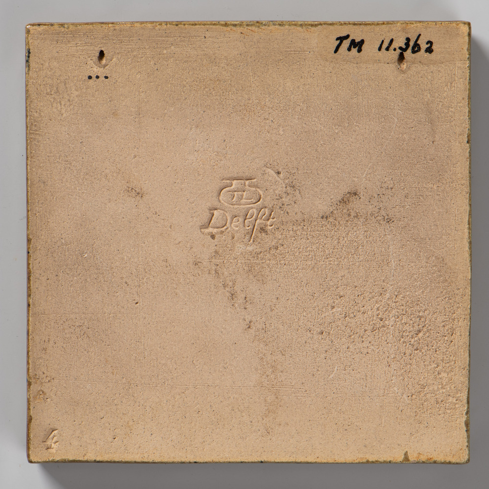 Tegel van keramiek met tinglazuur, voorstellende: Se...