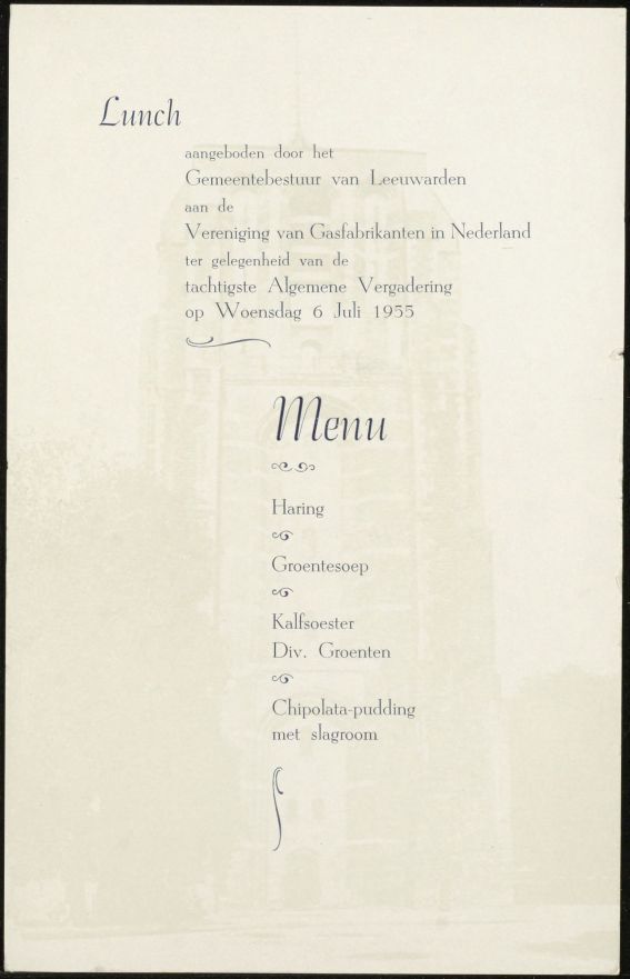Menukaartje Gemeentebestuur van Leeuwarden