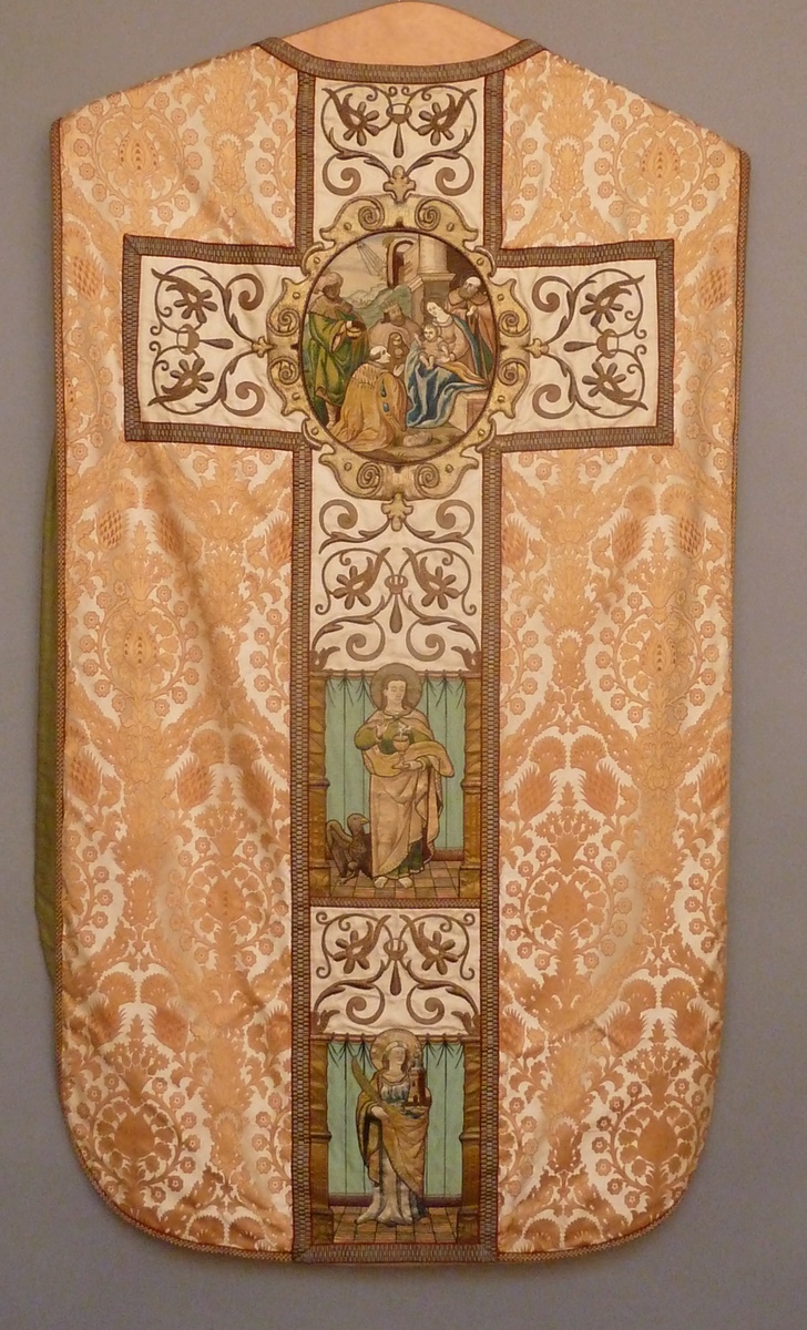 Wit kazuifel met Barbara en Nicolaas, aanbidding, Jo...