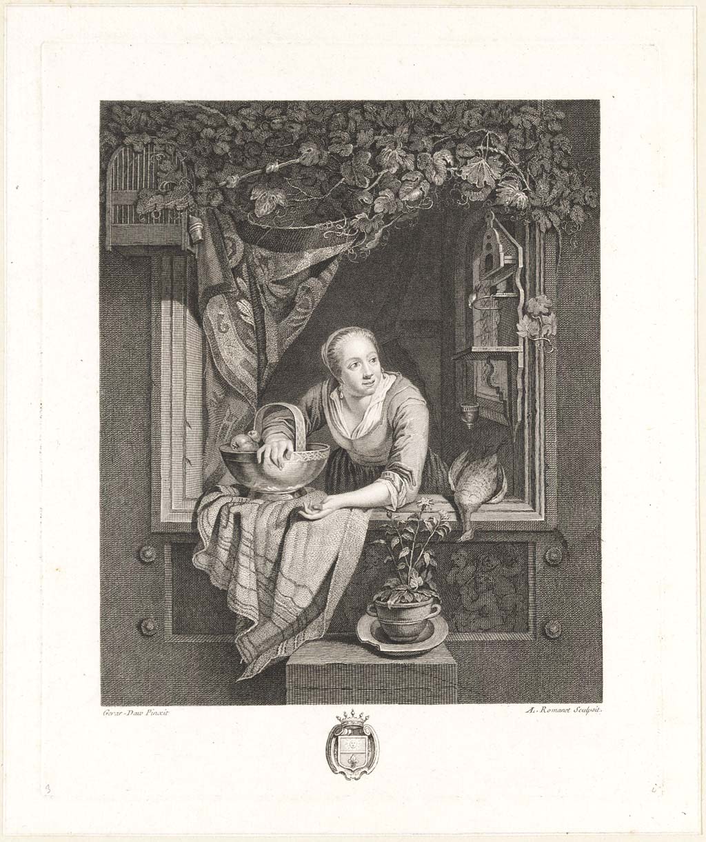Een keukenmeid in een vensterbank (franse titel: un ...