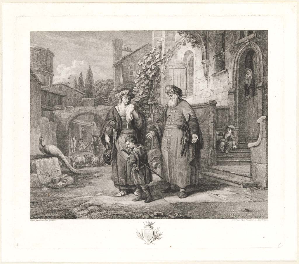 Abraham stuurt Hagar weg. (fr.titel: Abraham qui ren...
