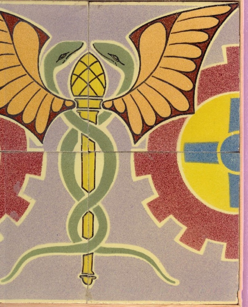 tegel van keramiek, gesjabloneerd, voorstellende: ge...