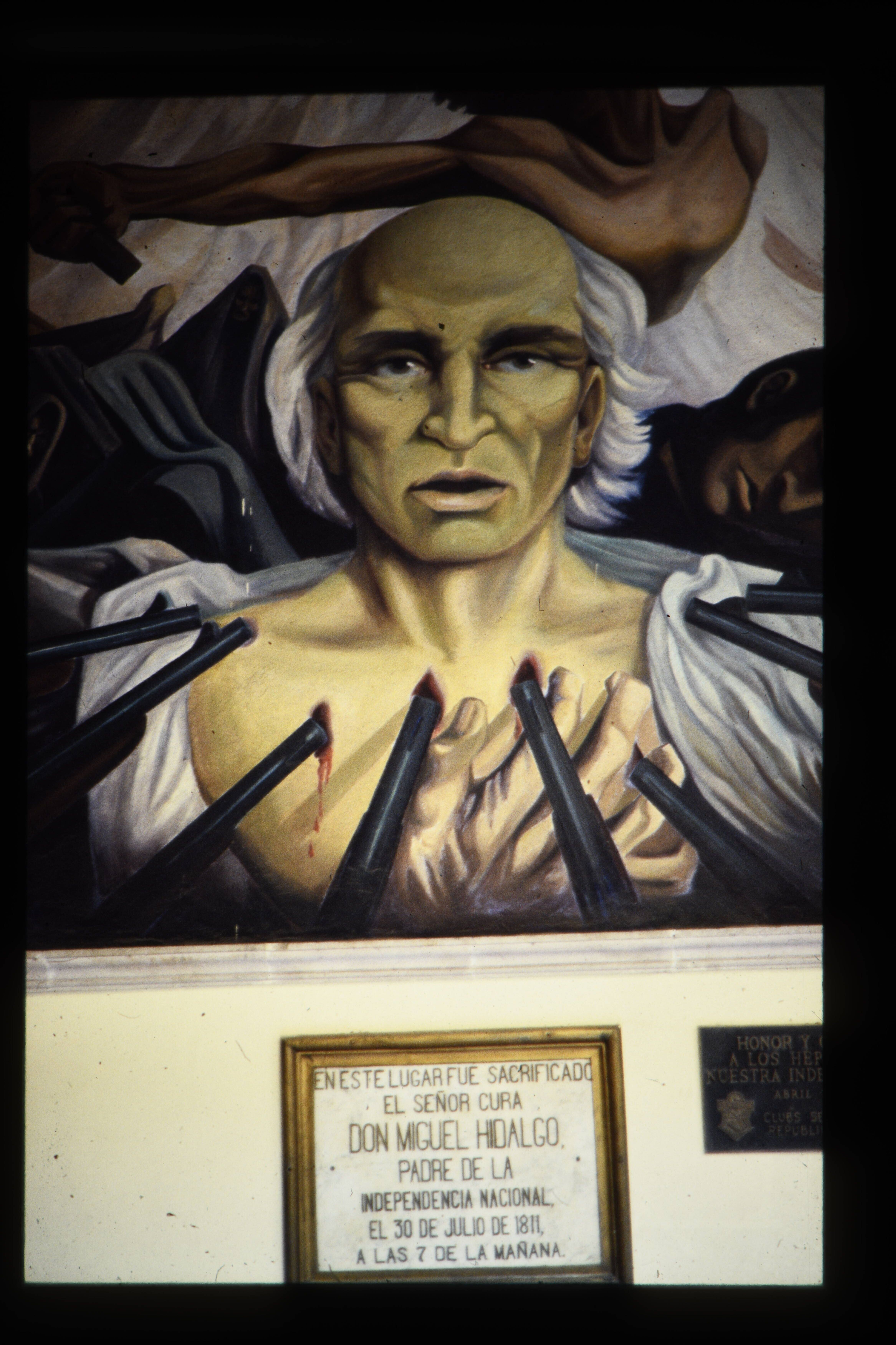 'Muurschildering Hidalgo in Chihuahua onthoofd. Bego...