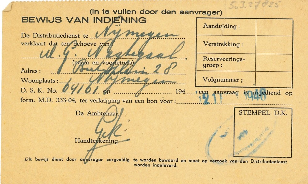 bewijs van indiening - Distributiedienst Nijmegen .