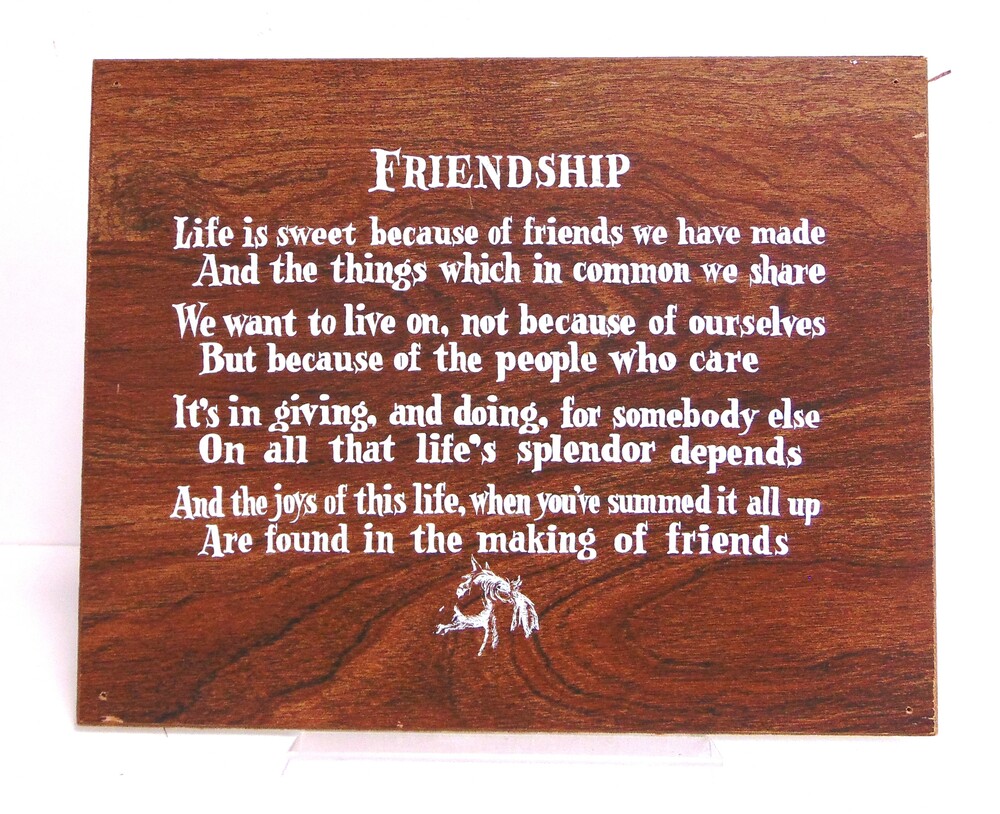 gedenkplaat met tekst, titel Friendship