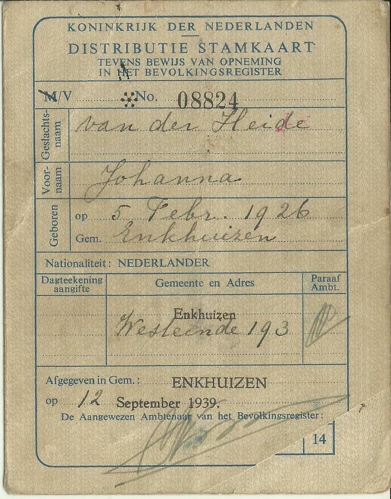 Distributiestamkaart op naam van , van der Heide, Jo...