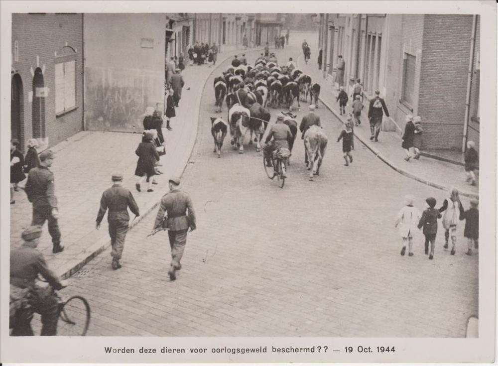 Foto (ansichtkaart) van koeien die door Duitse solda...