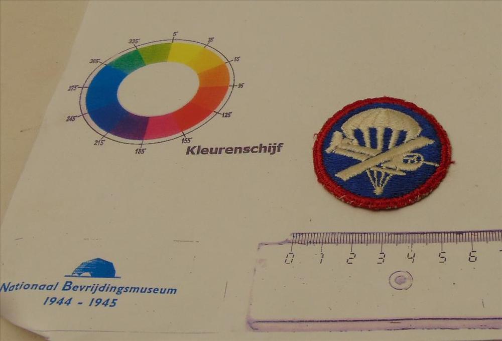 stoffen embleem Capbadge uitgereikt door Gen Gavin a...