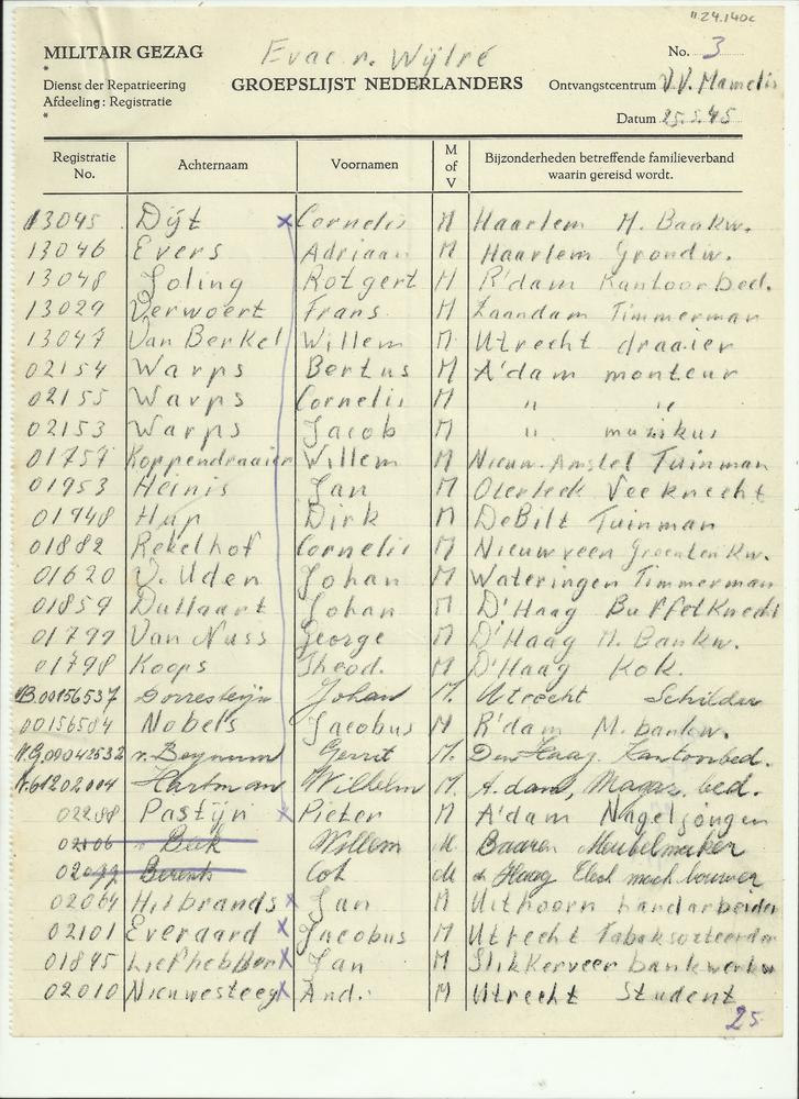 Rapport 25 mei 1945 evacuees naar Wijlre