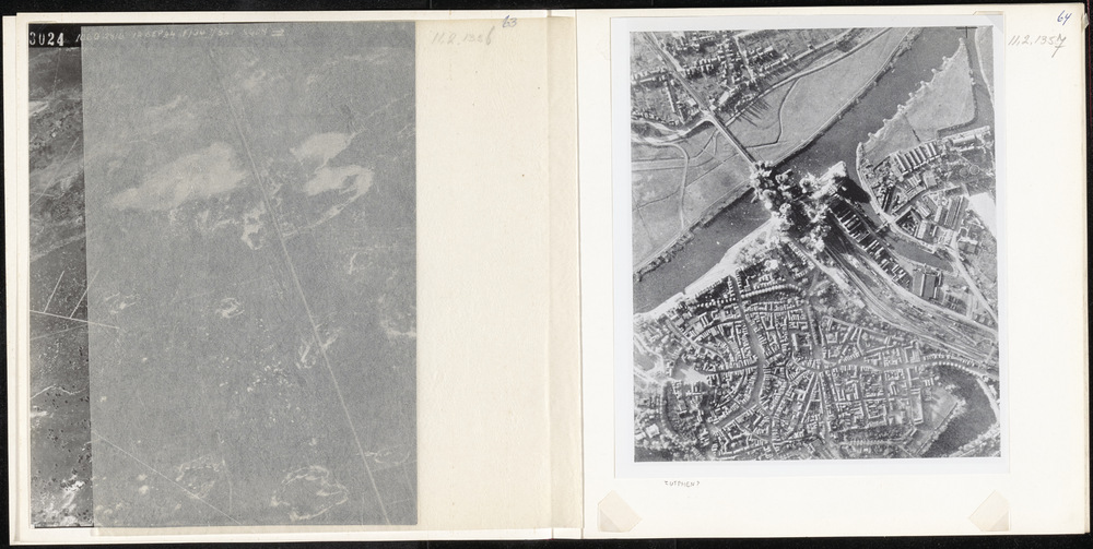 Luchtfoto van bombardement op stad. Zutphen, 14 okto...