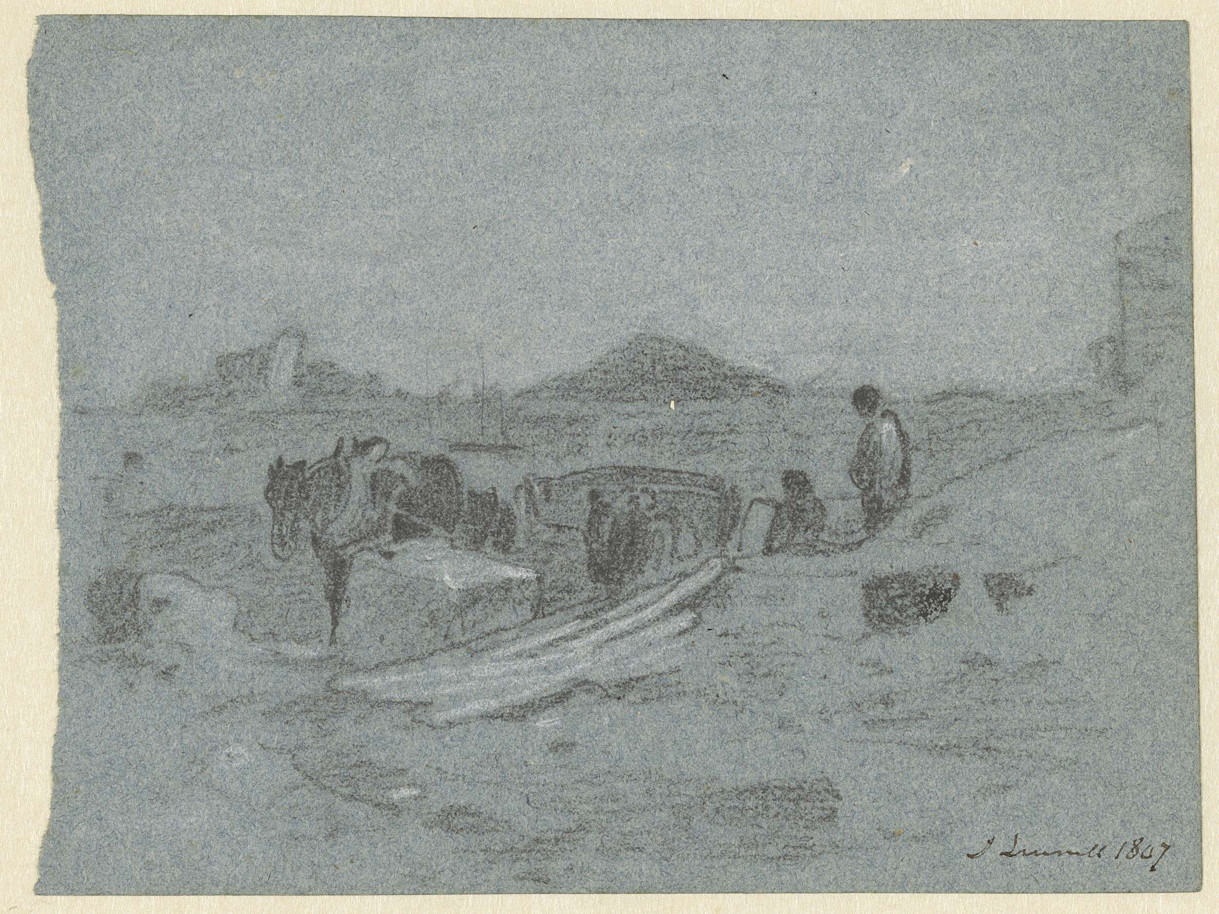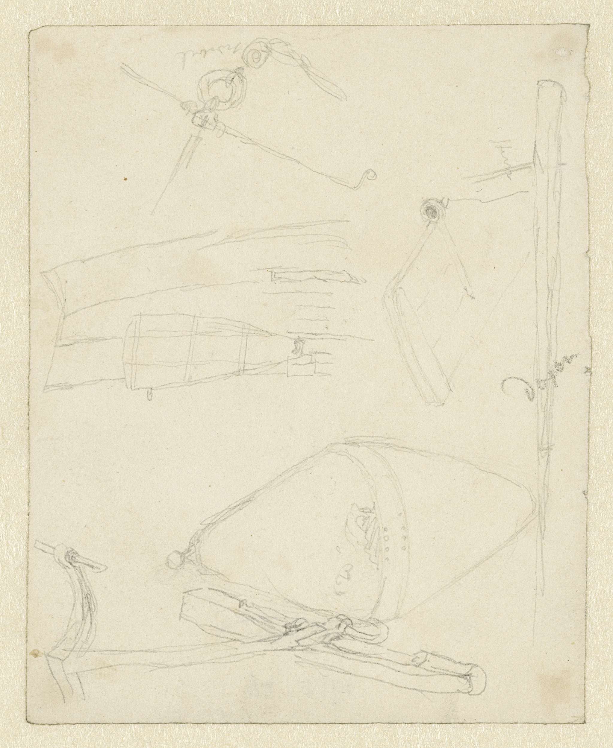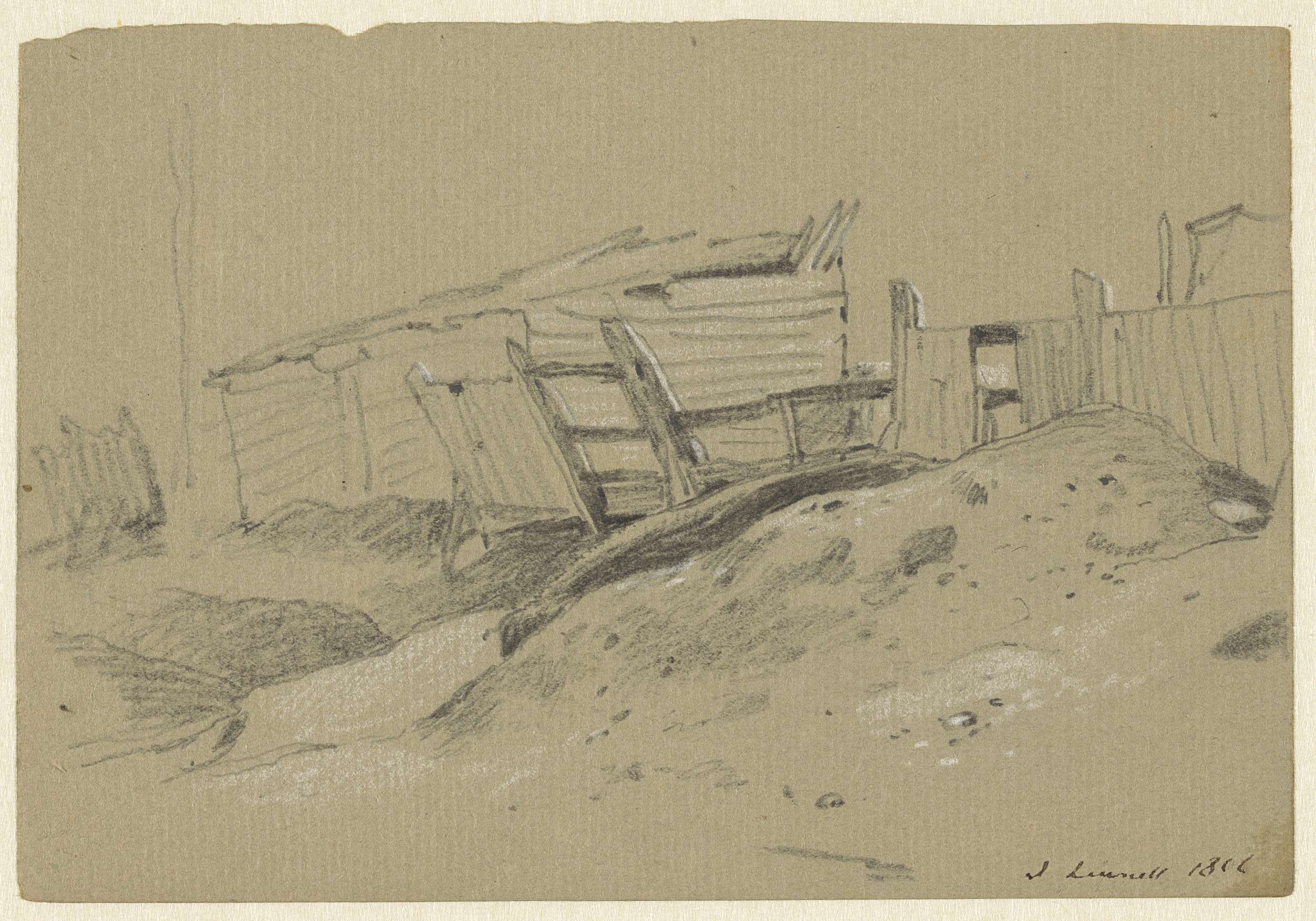 Twee karren op een bouwterrein, vermoedelijk bij het...