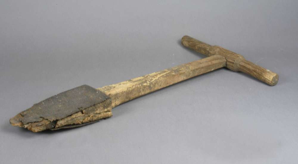 ijzeren dennenpoter met houten handvat, begin 20e eeuw