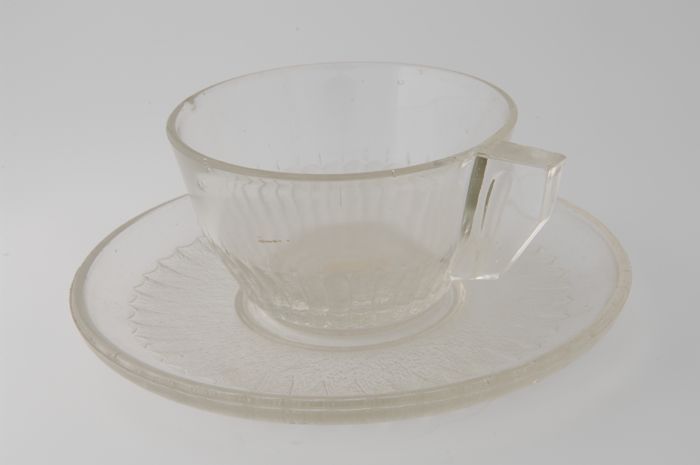 Bewerkte glazen kop en schotel "KRISTALUNIE MAASTRICHT"