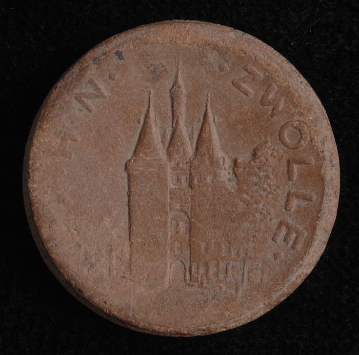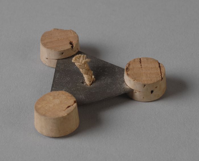 Drijvertje, driehoekig stukje metaal met lont in het...
