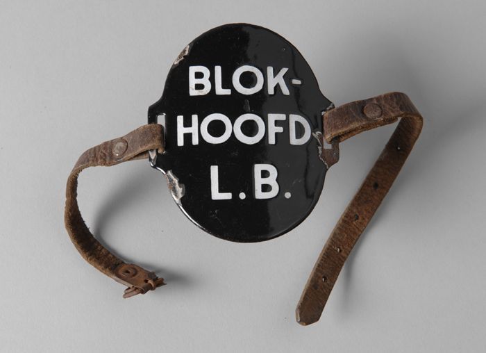 Ovaal zwart geëmailleerd armschildje met "BLOK-HOOFD...
