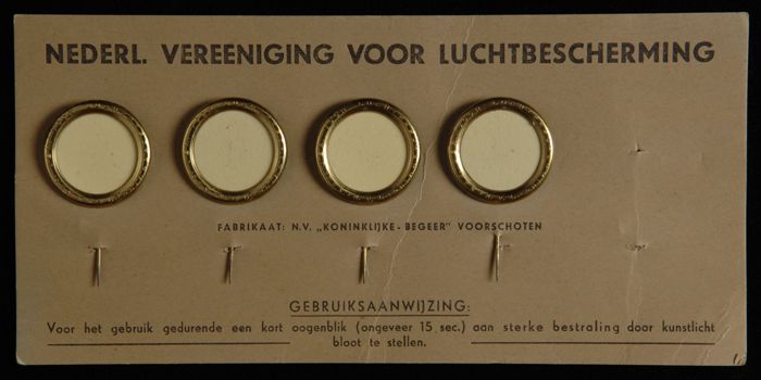 Vier lichtgevende speldjes Luchtbeveiliging op karto...