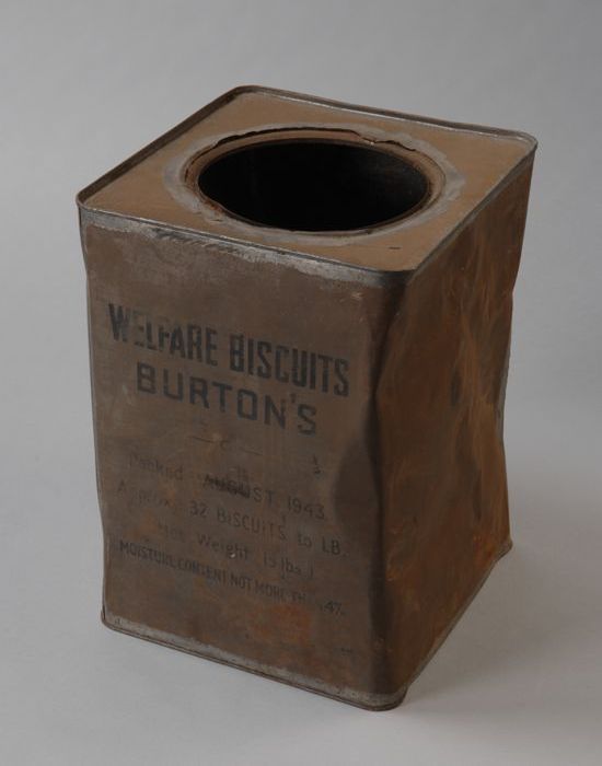 Rechthoekig metalen biscuitblik "WELFARE BISCUITS" v...