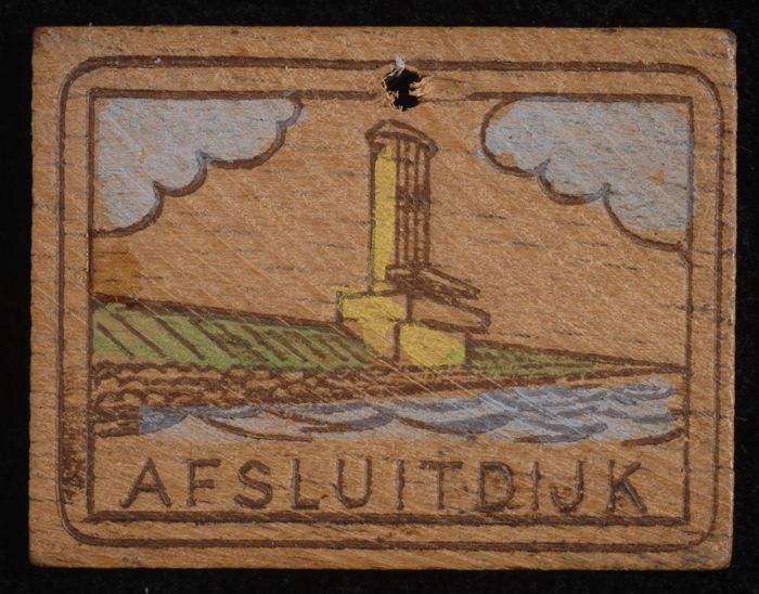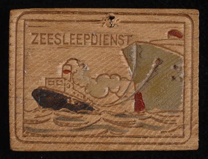 Houten winterhulpspeld met daarop ingestempeld en in...