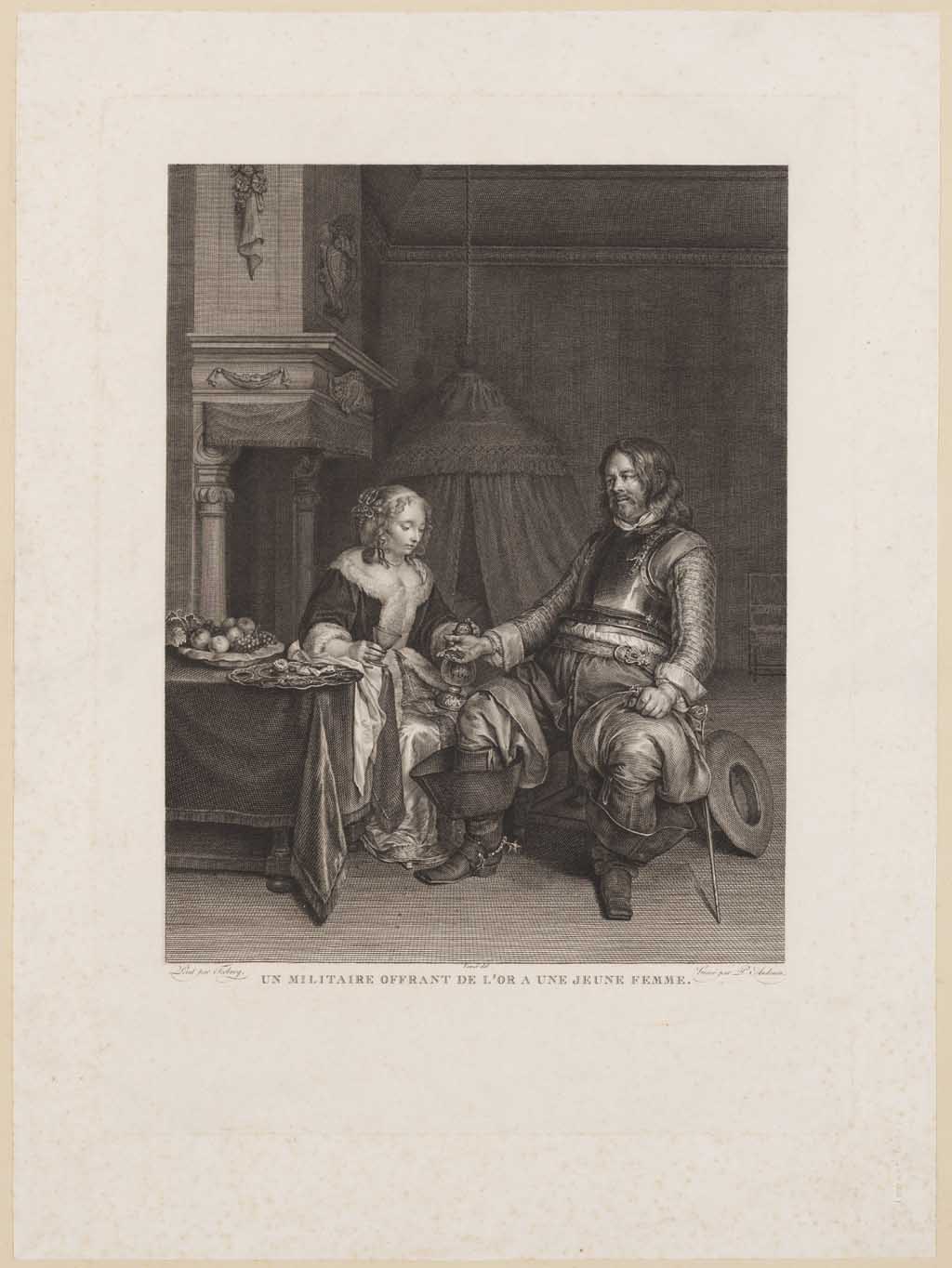 Un militaire offrant de l'or à une jeune femme