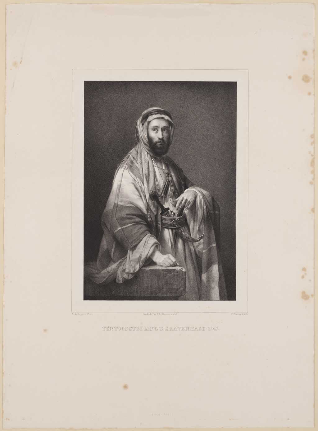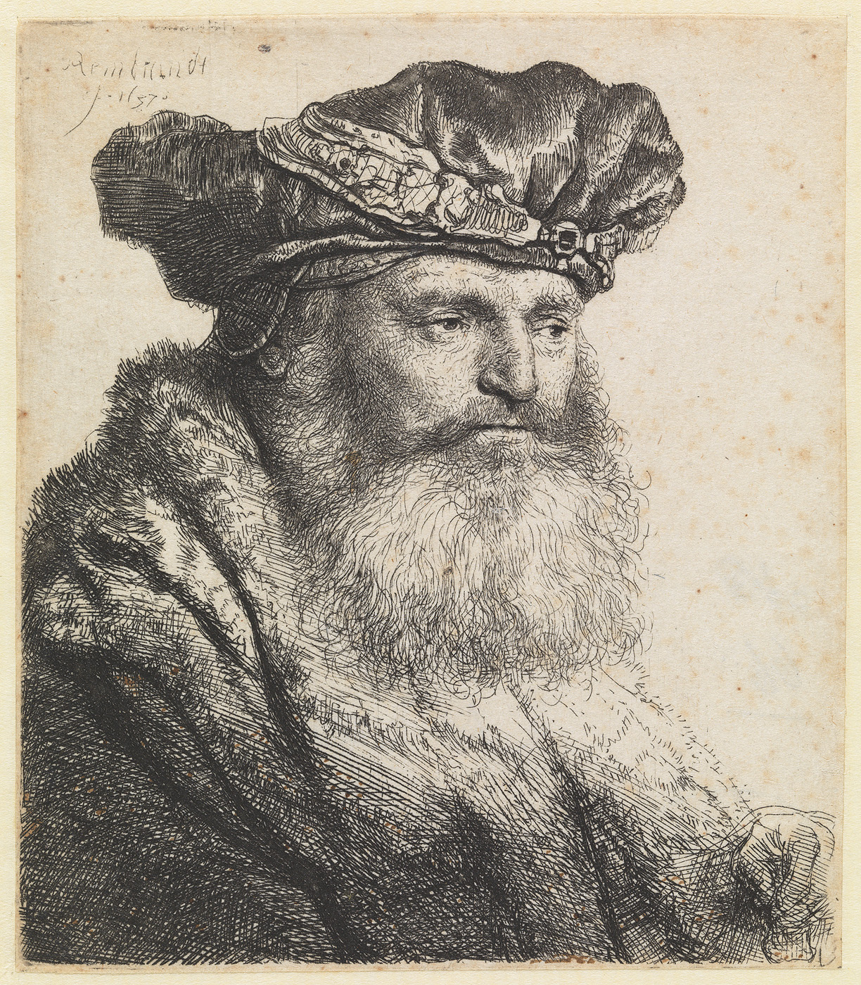 Gebaarde man met een fluwelen baret waarop een juwel...