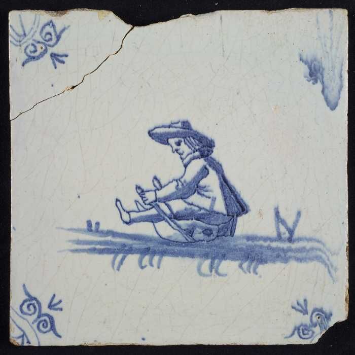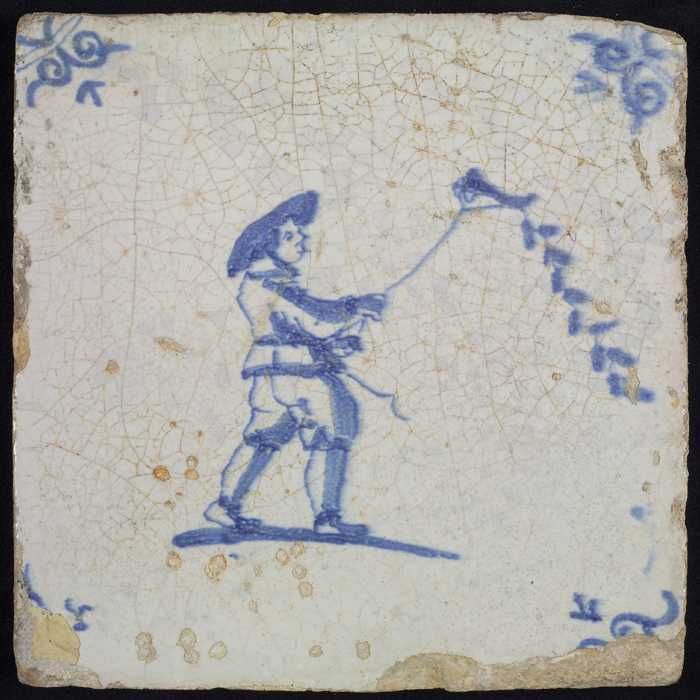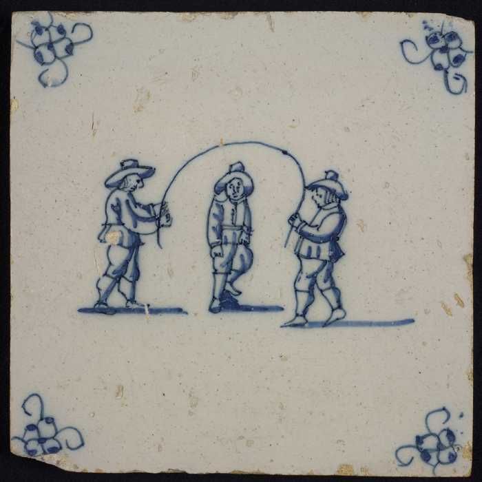 Tafereeltegel, blauw op wit, kinderspel, beugelen, h...