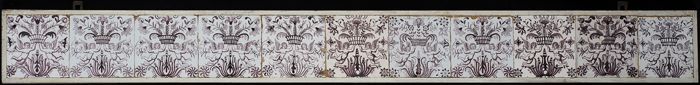 Tegelveld van elf stuks, één hoog, elf breed; orname...