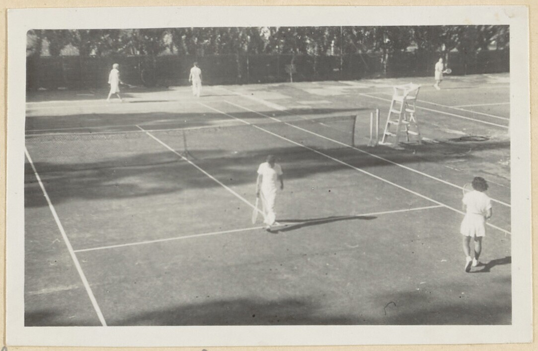 Gezicht op één van de tennisbanen van de Bandungse t...