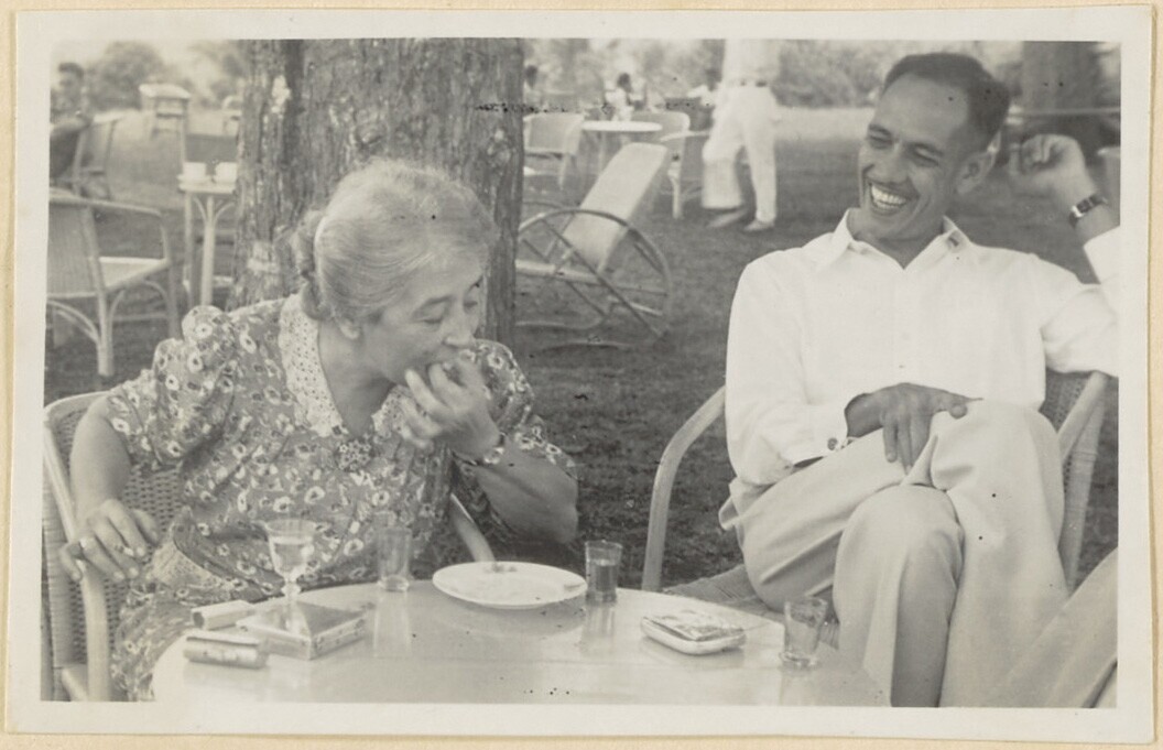 Indo - Europese vrouw op de veranda