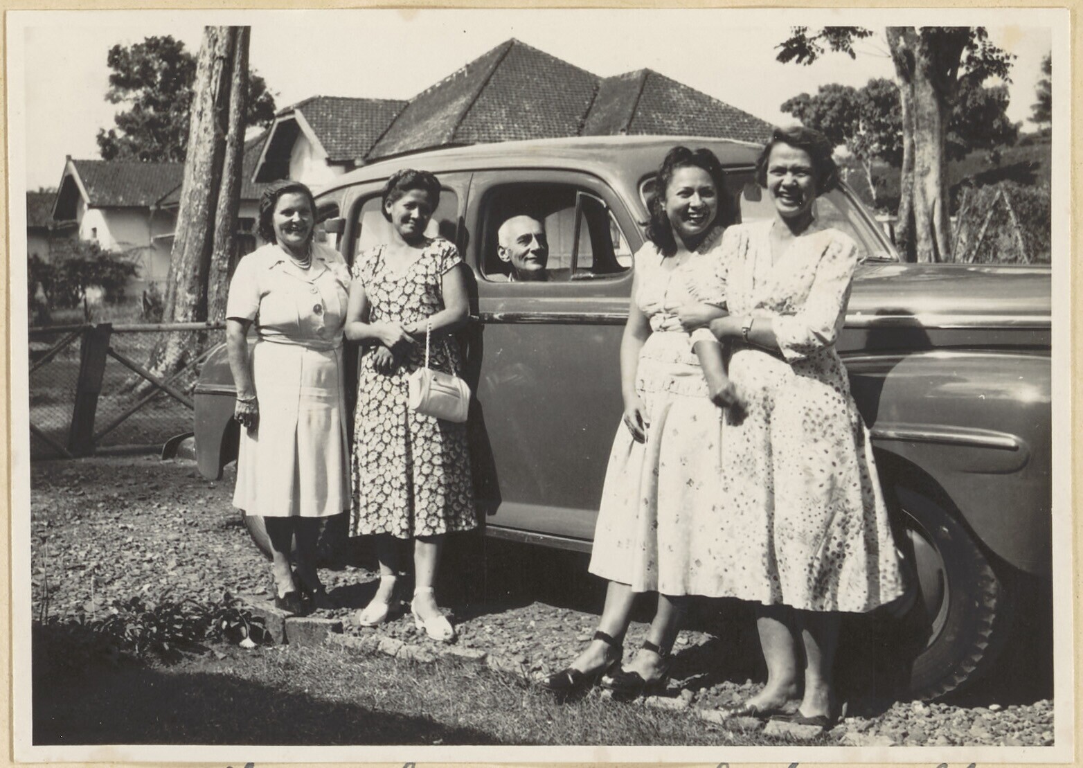 Indische man en -vrouwen bij de auto
